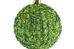 Блискучий шар, декорований глітером, бісером і паєтками, використовується для прикрашання новорічної ялинки, хвойних гілок і декоративних композицій. Матеріал: пластик. Діаметр - 8 см.