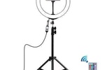 кільцева лампа, Призначення - для смартфона, Комплектація - кільцева LED лампа, тримач телефону, штатив-трипод, пульт ДУ, Тип установки - підлоговий, Зовнішній діаметр лампи - 250 мм, холодний, теплий, нейтральний, Висота в зібраному стані - 49.5 см, Висота в розкладеному стані - 110 см, 1320 г, чорний| Виробник | Puluz |