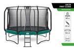 Залишивши осторонь матеріали преміум-класу, поговоримо про зовнішній вигляд батута! Унікальний та витончений дизайн батута First Class робить його справжнім центром уваги у вашому саду! Глянцева захисна накладка товщиною 0,76 мм не лише надає батуту First Class преміум-класу розкішний вигляд, але і є надміцною та надзвичайно широкою, повністю закриваючи конічні пружини. З довжиною пружини 210 мм ви зможете здійснювати високі та потужні стрибки. Якщо ви втратите рівновагу під час стрибка, щільна, дрібнопориста сітка безпеки з входом, що самозакривається, подбає про те, щоб ви приземлилися безпечно і м'яко!