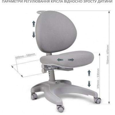 12 кг, 80 кг, газліфт, Регулювання - висота сидіння, висота спинки, глибина сидіння, сірийНемає в наявності