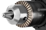 Міцний суцільнометалевий патрон з 13-мм ключем надійно та ефективно фіксує бурові біти. Потужність свердління патрона з ключем різна для різних матеріалів. Цей патрон забезпечує максимальний діаметр свердління 25 мм у дереві, 13 мм у бетоні та 13 мм у цегляній кладці. Інструмент постачається із міцним ключем для патрона, який забезпечує функцію ударного свердління.