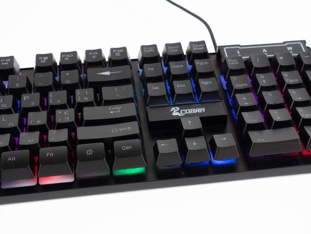 Повнорозмірна мембранна клавіатура 104 клавіші. Технологія Anti-ghosting на 19 клавіш для попередження фіктивного натискання. RGB підсвічування символів і клавіш. Українська і російська розкладка клавіатури для зручної роботи. Подовжений кабель 1,5 м для вільних рухів. Вага 400 г. Сумісність Windows 2000 / XP / Vista / 7/8/13.