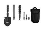 Багатофункціональна лопата для виживання, максимальна довжина 63 см, складна конструкція, лопата 8 в 1, пилка, кирка, відкривалка для пляшок, кремінь, багатофункціональний ніж, пробійник, свисток, чохол для перенесення та зберігання. Цей інструмент чудово підходить для піших прогулянок, кемпінгу та розвідки.