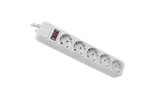 Пристрій з п'ятьма універсальними розетками з заземленням і довжиною кабелю 4.5 метра, виготовлений в ударостійкому пластиковому корпусі, має вбудований захист від перевантажень і короткого замикання, а також оснащений отвором для кріплення на стіні.
